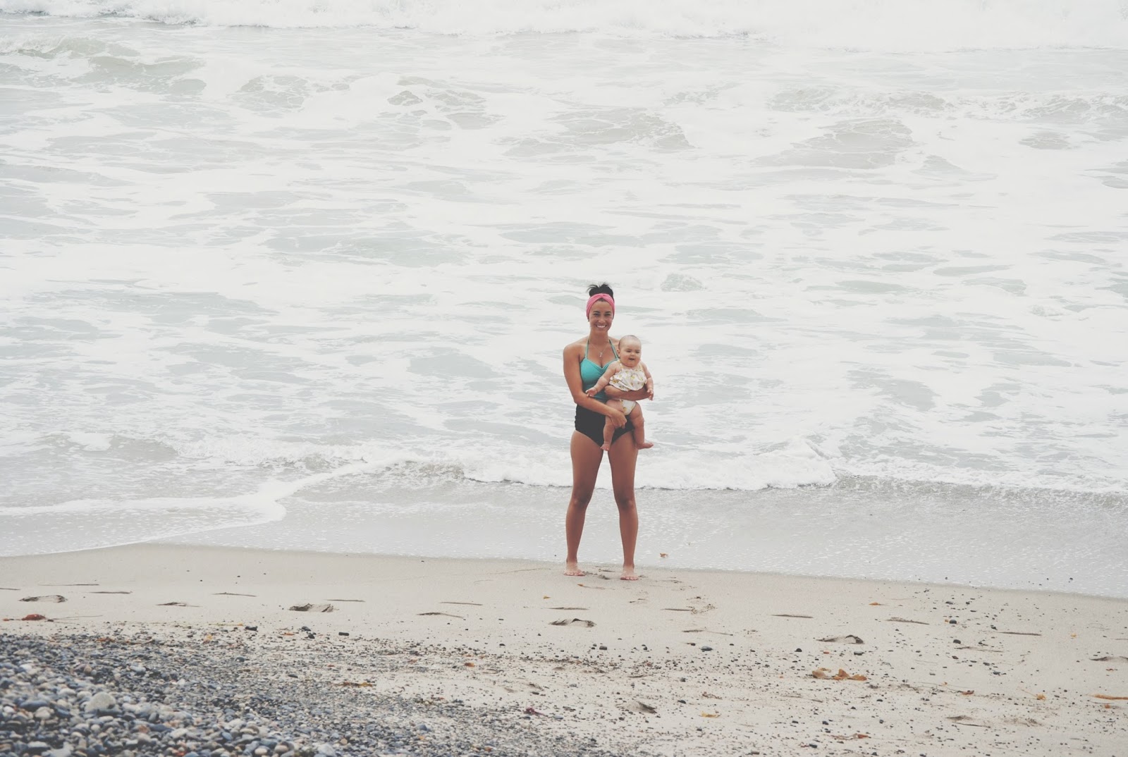 Today my little family headed out to the beach, for a day of tranquility and relaxation. It ended up being just that. The weather was priceless! It was the perfect combination of being over cast, with a touch of sunshine. I have been looking forward to taking Penelope to the beach and dipping her toes into the sand. She ended up being frightened of the ocean, but thoroughly enjoyed riding on her papa's shoulders and running her chubby little fingers through the sand.