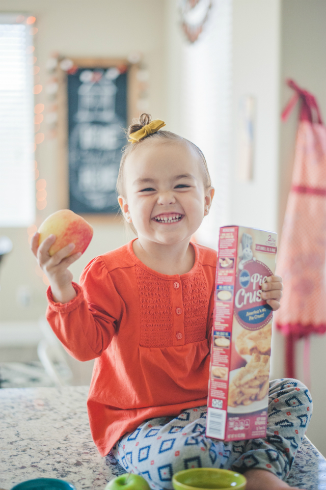 Friday we made the cutest mini hand pies ever. P kept calling them baby apple pies and has been sharing the recipe with all of her friends. We had my friend Jess and her amazingly darling girls over for a play date. P could hardly contain her excitement until they arrived.